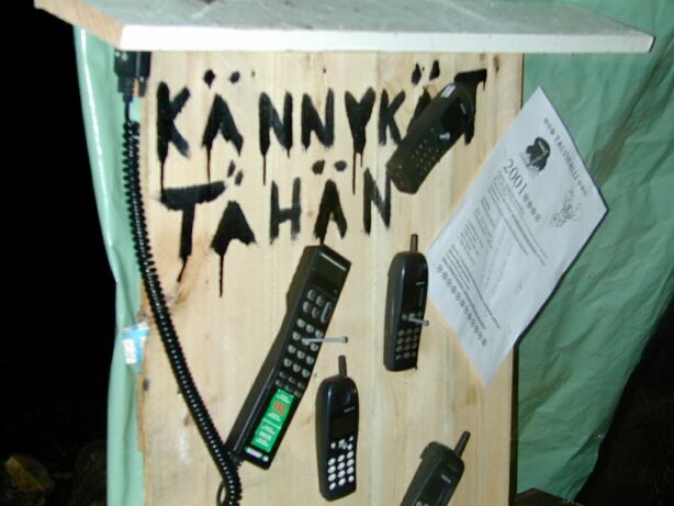 Portille saavuttuamme huomasimme järjestäjien kannattavan luonnonrauhaa kokoontumisajopaikalla kaikin keinoin, siksi kännykät pitikin luovuttaa portilla...